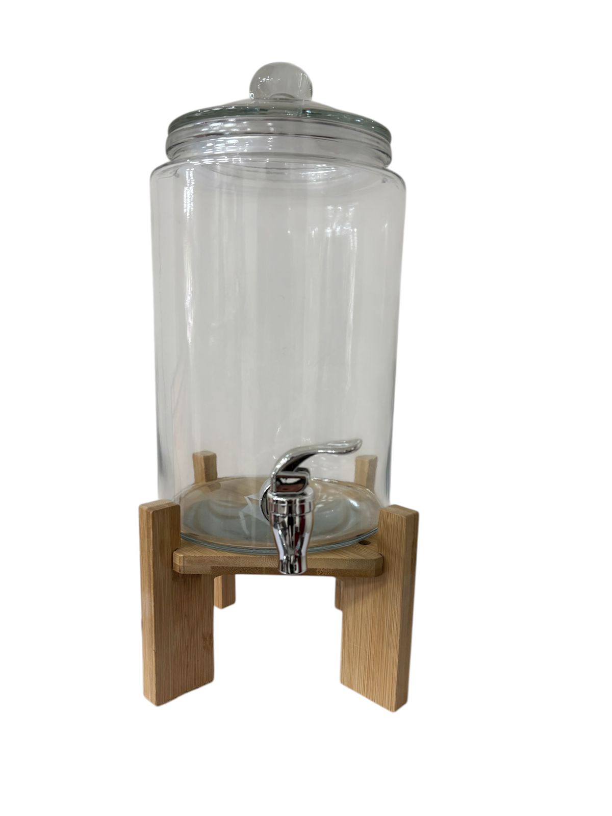 Frasco Dispenser Vidrio 4 lts con canilla y Base de Madera